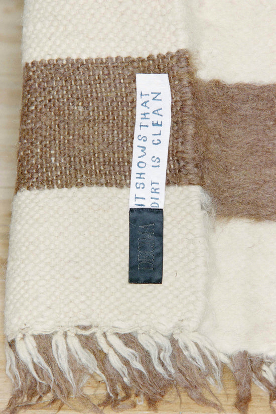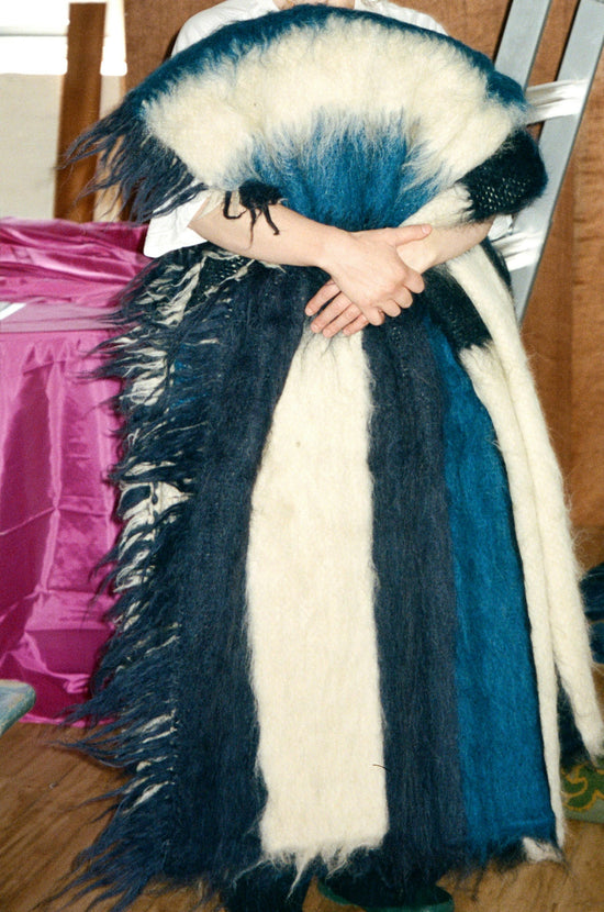 GA: They are made with quality virgin wool from the regional mountain sheep, each piece is woven by hand on a wooden loom, then submerged in the mountain river to gently felt the wool fibres. After being laid out in the sun to naturally dry, they are hand brushed on one side to create the soft, fleecy texture.