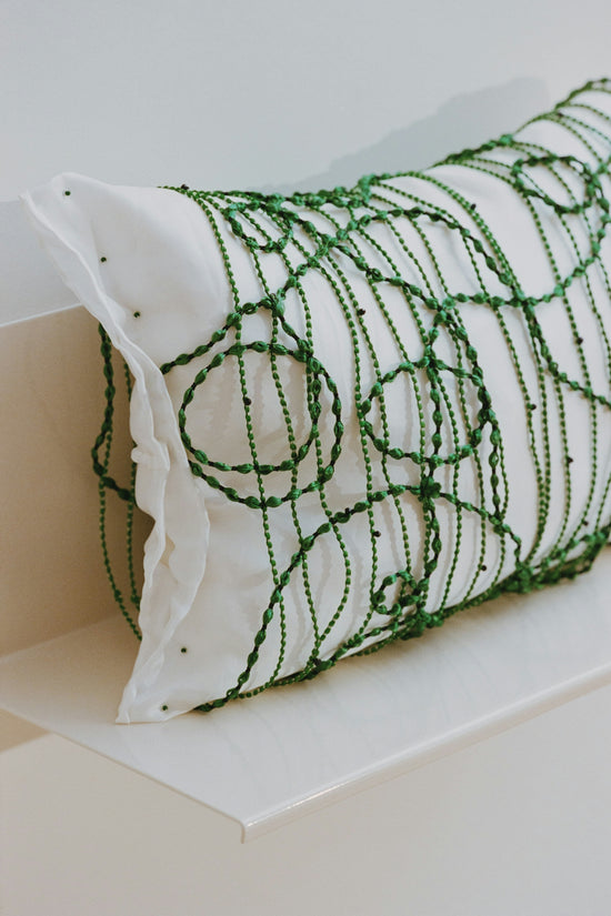 EB: I’m enjoying imagining the cushions as having this tension with its form that contrasts an expected functionality with the extreme delicacy of an artwork. What are the possibilities of having a relationship of softness to an object that's purely emotional or cerebral and not necessarily tactile or functional all the time?