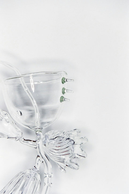 The stem is made purposefully thick, which allows for cutting. I love how it evokes a bone-like shape. The technique itself is a speciality of the Czech Republic and also something that is difficult to do in Italian workshops.