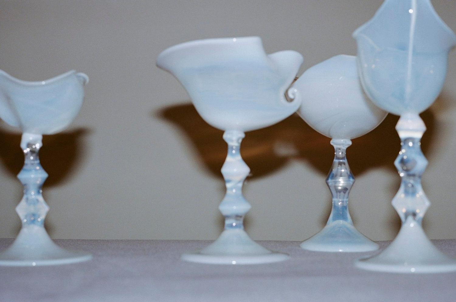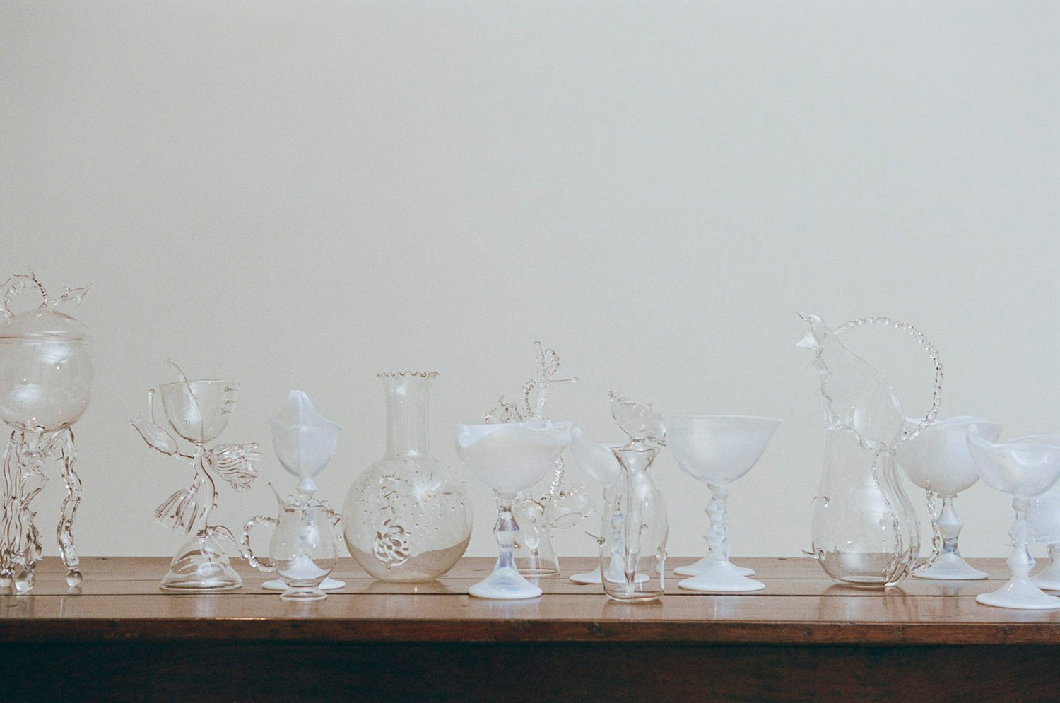 This collection of work serves as an experimental exploration into new materialities, techniques and processes – including liquid-like enameled copper vessels, large scale wooden boxes with dressings, and freeform expressions in opaque glass, made in collaboration with a small workshop in the Czech Republic.