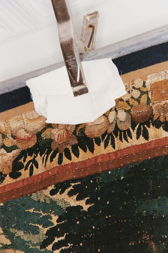 AS: Kristin's seat coverings for the Morris chairs really do sum it up. What I love about the contemporary designers that are working with Jacqueline are how they have interpreted historical design and produced new pieces with their own craft and skill sets. It started with a general conversation about Decorative Arts that I had with Jacqueline early on. Although Decorative Arts might now refer to a time period, the spirit of that period is carried through to everything that was picked. There are pieces like the Arts and Crafts cabinet, and the large rug attributed to Voysey. But importantly, there are pieces from outside this timeframe like a chair and lamp by Gaetano Pesce, and a wardrobe by Juliaan Lampens.
