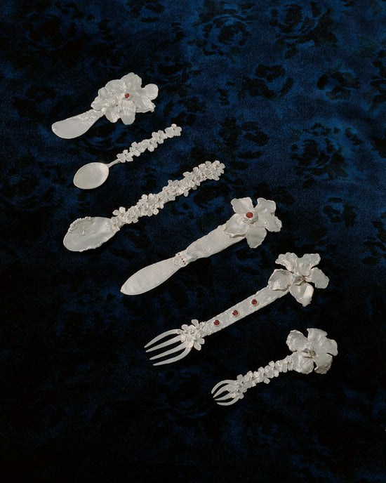C.V: I’ll be exhibiting a collection of sterling silver cutlery and small objects with red garnet stones designed in collaboration with my dear friend and goldsmith, Orit Elhanati. The collection is called JARDIN (garden in Spanish). For us, a jardin is a place of wonder, where nature's beauty flourishes in a symphony of colors, scents, and textures. It's a sanctuary where life unfolds, inviting exploration and evoking a sense of awe.