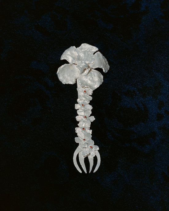 The collection is inspired by the elegance of the Gothic Victorian era, celebrated for its opulent craftsmanship and evocative silhouettes. Using precious metals and stones, the objects utilize gothic design elements that contrast with delicately handcrafted floral motifs.