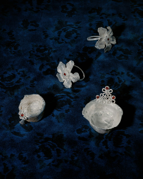 C.V: We hope that these pieces serve as a visual testament to beauty that emerges in unexpected places. Within each petal lies a narrative thread, weaving stories of tenacity, transformation, and the universal connection between humanity and their environment. Importantly, these objects can transcend their utility to enrich our everyday rituals, not only with aesthetic allure, but also with a tangible connection to history.