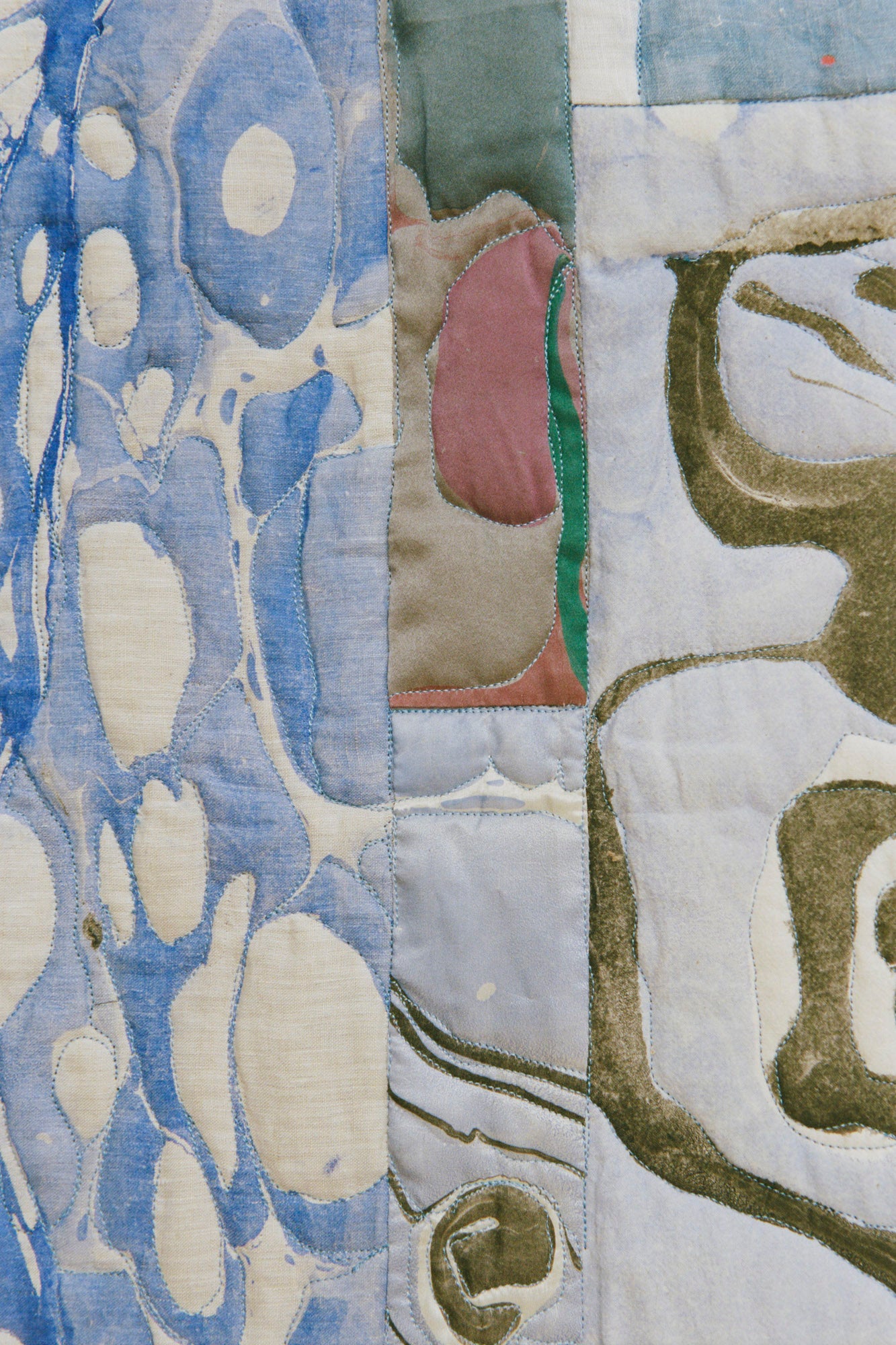 Libby Rosen was formed through the shared interests and parallel practices of its two collaborators, Anne Libby and Anna Rosen, who met in New York City and later relocated to Los Angeles. After establishing studios in the same building, their proximity fostered ongoing dialogue that led to a shared mutual admiration. Rosen’s practice centers on marbling, in which acrylic pigment is suspended on the top of a pool of water, and then the paper or fabric is dragged across. This process creates endlessly interesting biomorphic forms. Libby explores the representation of reflections through polished metal and quilted works, which abstracts glass facades into liquified surfaces. United by their many overlapping interests and artistic preoccupations, their series exemplifies their evolving notions of abstraction, transformation, and perspective.