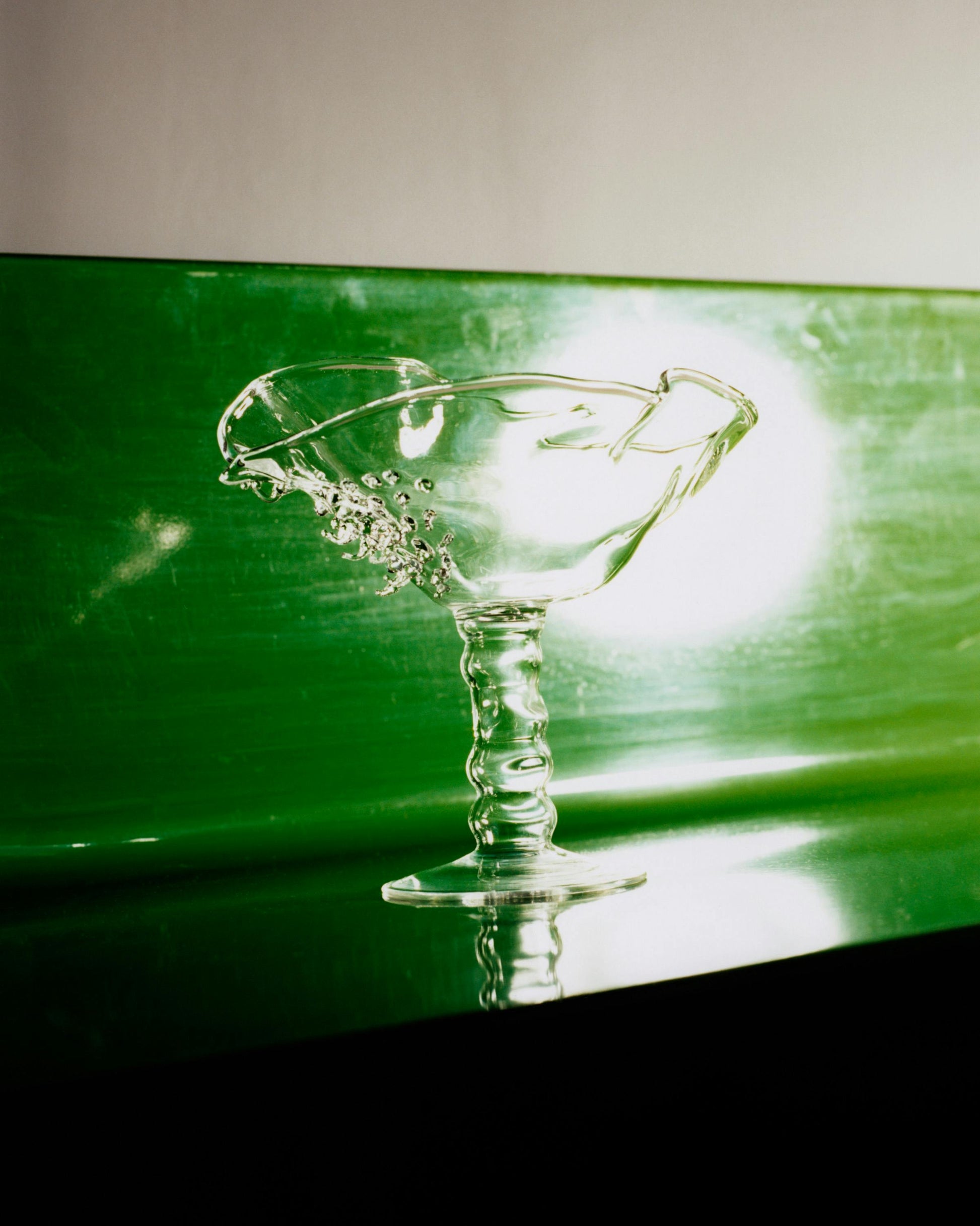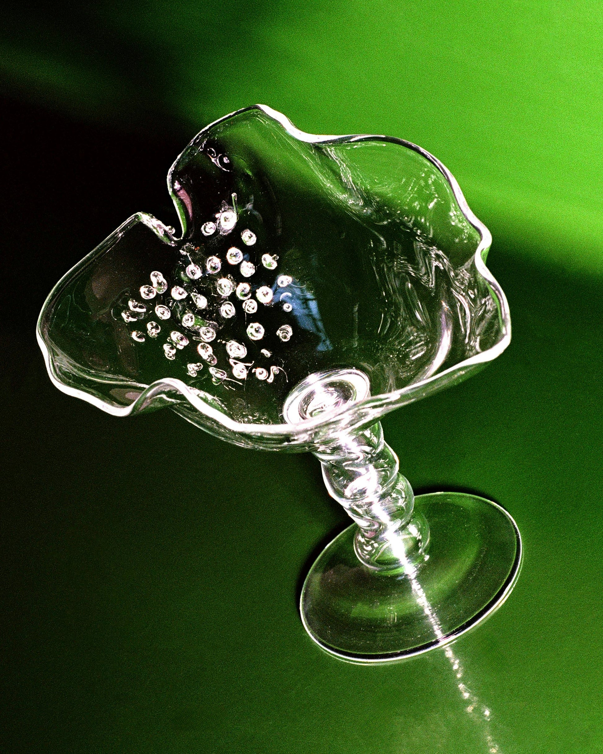 Valentina Cameranesi-Sgroi continues to push the boundaries of borosilicate glass (a material usually reserved for scientific instruments). Inspired by ritual and theatricality, this vessel was conceived as one for a banquet – intended to be used for wine, champagne, cream, something a bit indulgent – all in pursuit of life’s most sensuous pleasures. Its lace-inspired surface is reminiscent of the textural quality of a special garment, one that evokes a sense of nostalgia and sentimentality.
