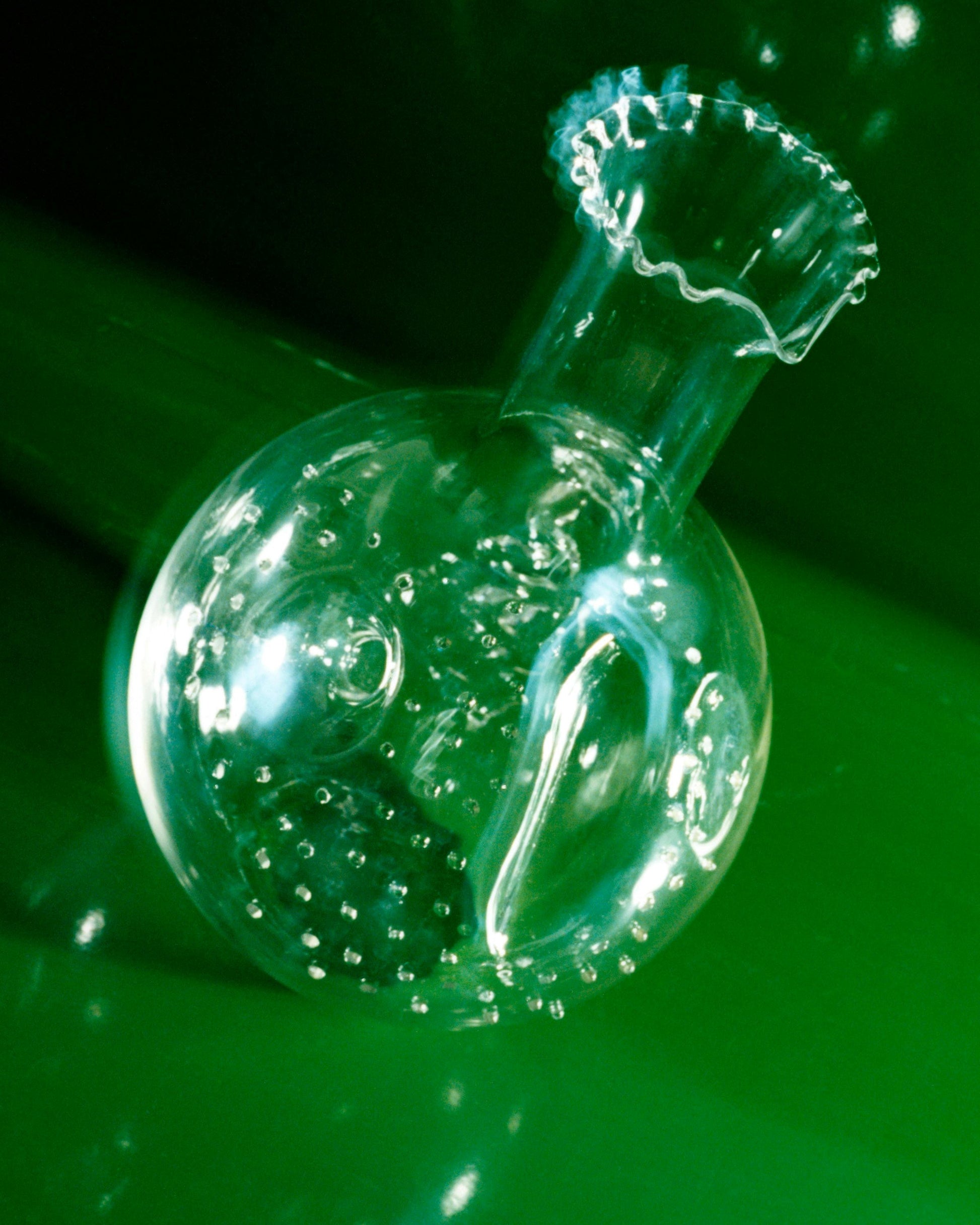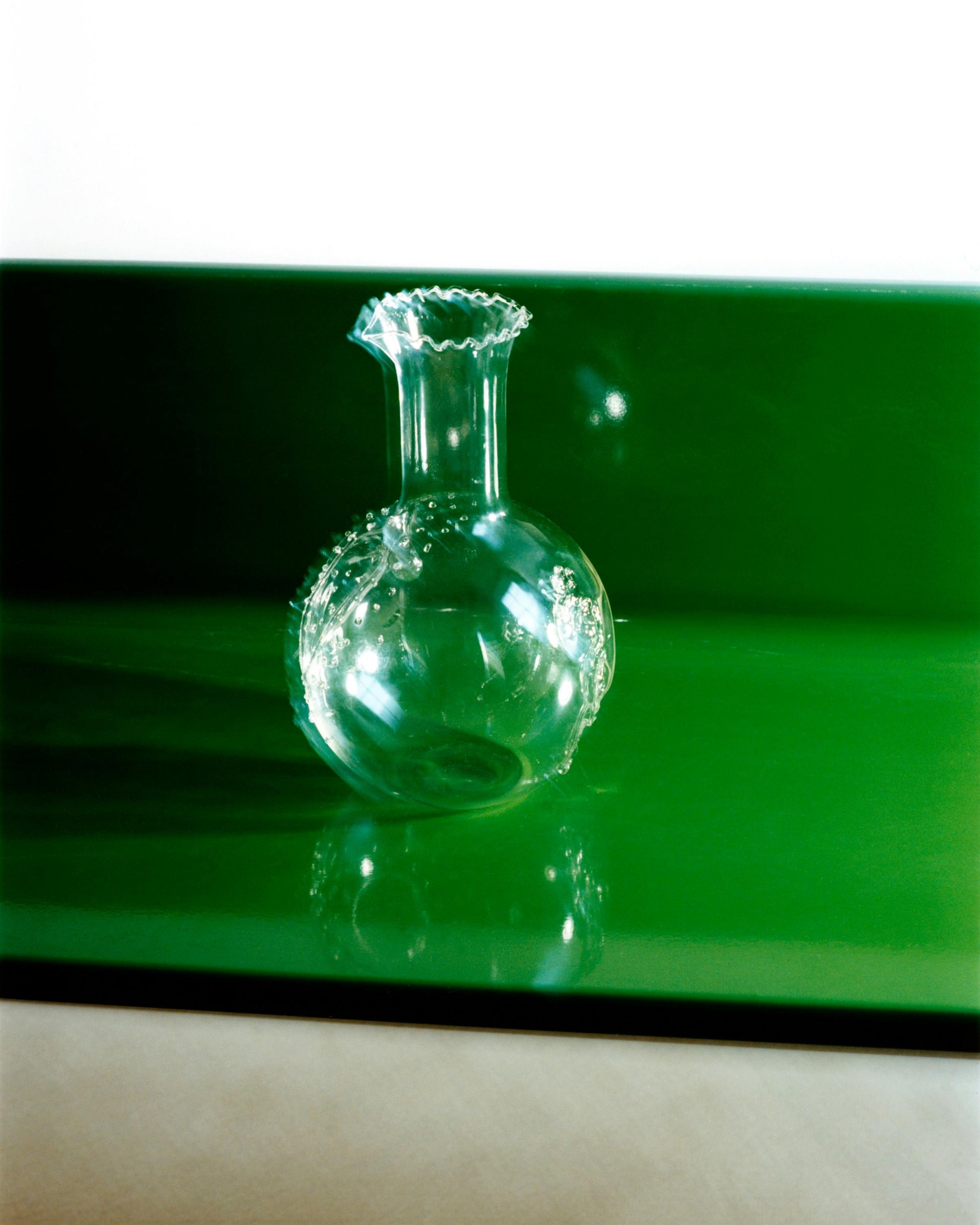 Valentina Cameranesi-Sgroi continues to push the boundaries of borosilicate glass (a material usually reserved for scientific instruments). Inspired by ritual and theatricality, this vessel was conceived as one for a banquet – intended to be used for wine, champagne, cream, something a bit indulgent – all in pursuit of life’s most sensuous pleasures. Its lace-inspired surface is reminiscent of the textural quality of a special garment, one that evokes a sense of nostalgia and sentimentality – culminating in a vessel that is treasured and well-loved.