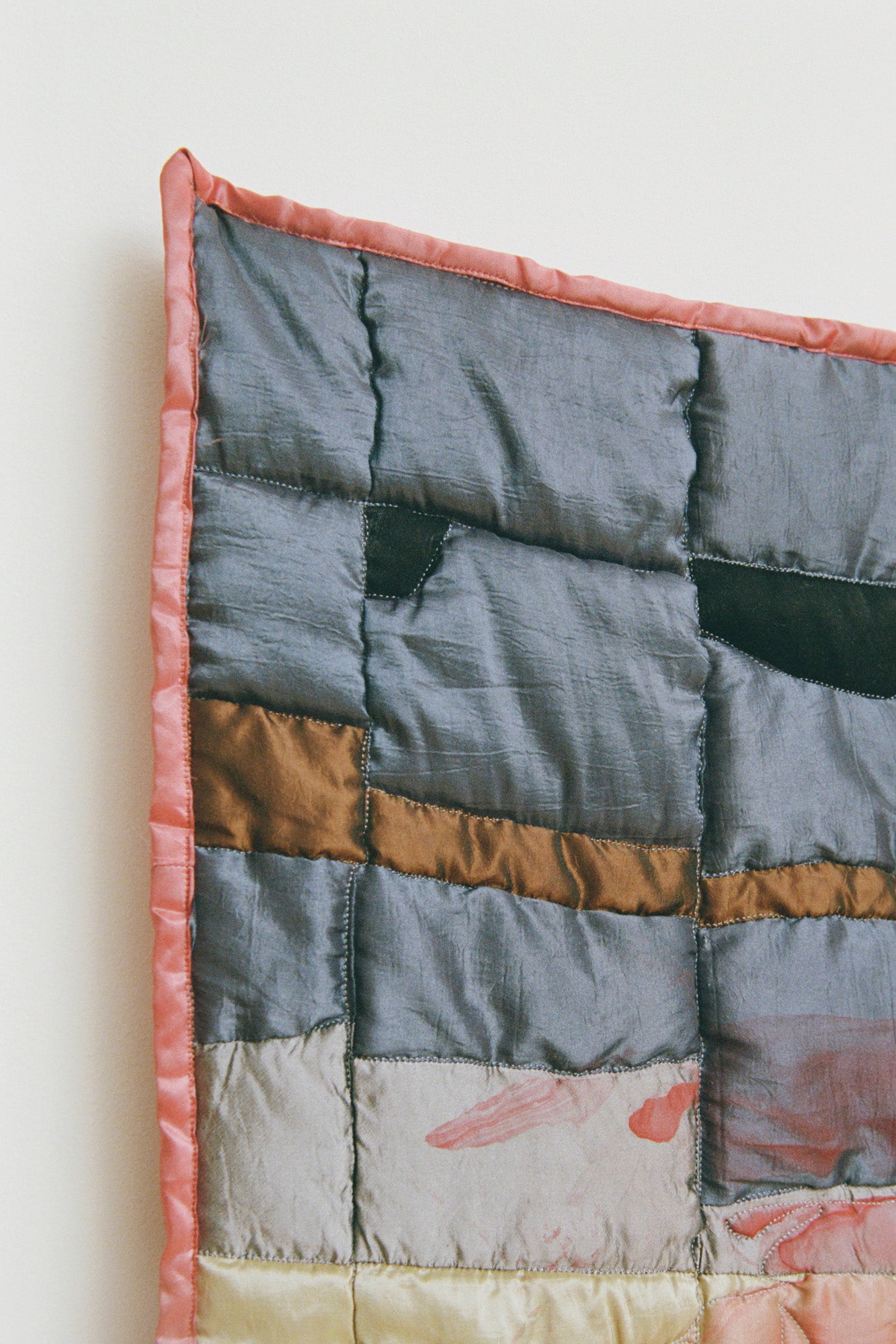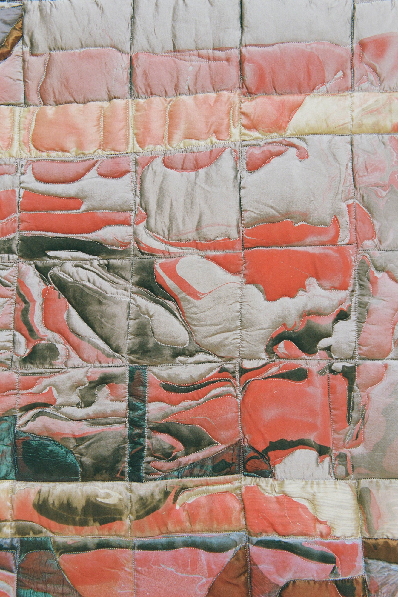 Libby Rosen was formed through the shared interests and parallel practices of its two collaborators, Anne Libby and Anna Rosen, who met in New York City and later relocated to Los Angeles. After establishing studios in the same building, their proximity fostered ongoing dialogue that led to a shared mutual admiration. Rosen’s practice centers on marbling, in which acrylic pigment is suspended on the top of a pool of water, and then the paper or fabric is dragged across. This process creates endlessly interesting biomorphic forms. Libby explores the representation of reflections through polished metal and quilted works, which abstracts glass facades into liquified surfaces. United by their many overlapping interests and artistic preoccupations, their series exemplifies their evolving notions of abstraction, transformation, and perspective.