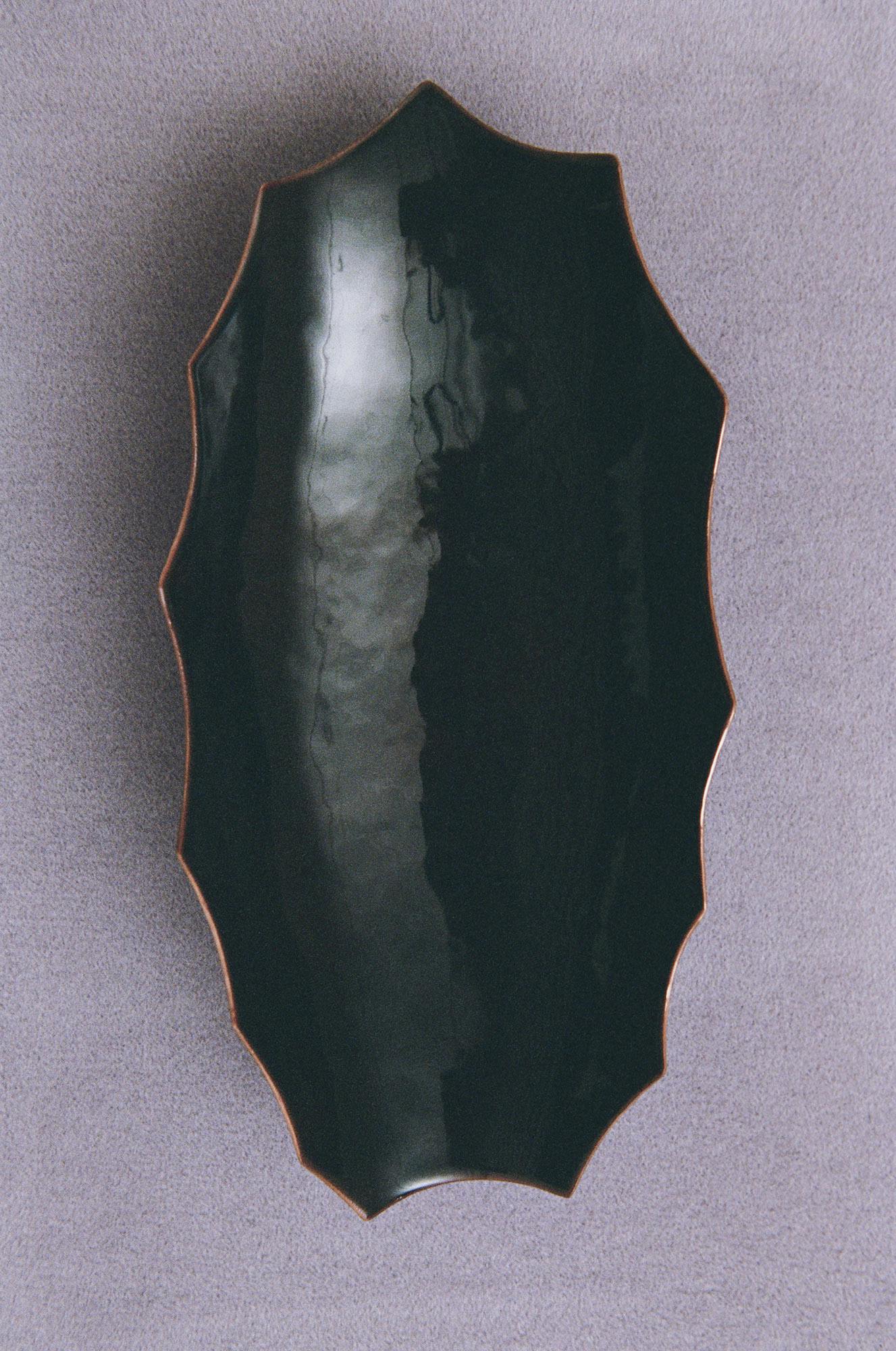 Cameranesi-Sgroi's enameled copper vessel was handmade in Venice. Entitled Marionetta IV, the work references the imperfection of assemblage, and draws visually from such diverse sources as vampires, Dracula, the Wizard of Oz's "Tin Man" as well as gothic 1980s French beauty advertising, like Serge Lutens ads for Shiseido. These boxes are perfect for storing things precious and delicate like jewelry, or even cotton balls, matches and cigarettes.