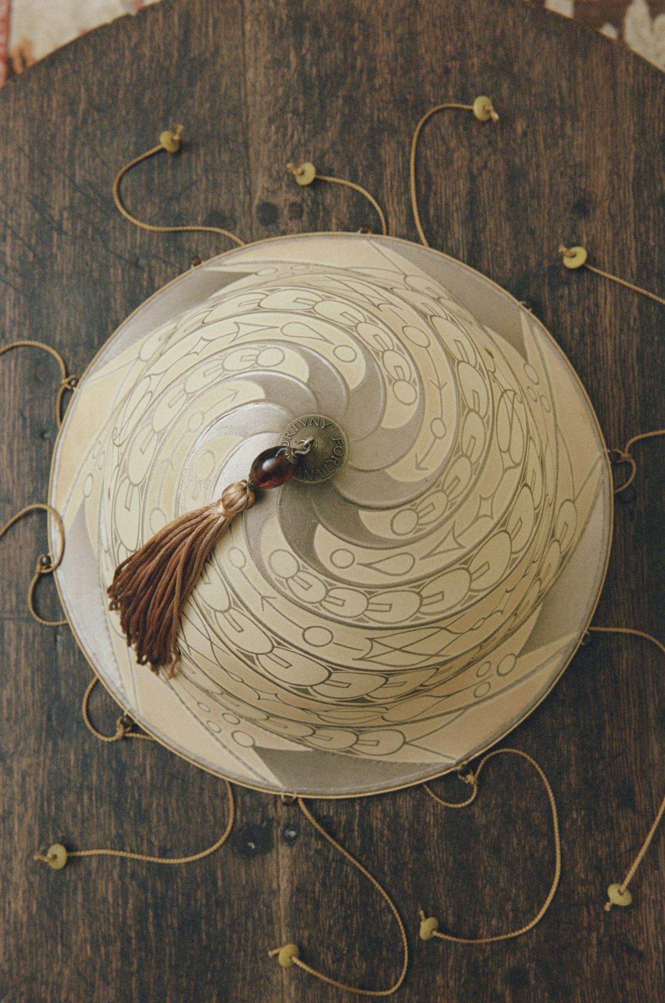 Founded by Spanish artist and fashion designer Mariano Fortuny, the beloved textile house Fortuny has a long legacy of sumptuous soft goods made with exquisite materials and superior craftsmanship. This antique Samarkanda Lamp was designed in 1904 and named after the city in present day Uzbekistan, an important place of craft production on the historic Silk Road. The lamp eloquently echoes design motifs from Western Europe and the Far East, composed of suspended dome twists and a ripple of handpainted Art Deco patterns that reverberate between handsewn boning details.